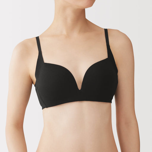 This wireless molded bra features a triangular cup that has been secured using a gluing technique, reducing the number of seams and resulting in a ...
