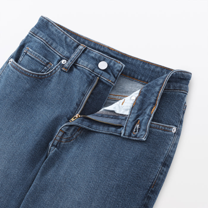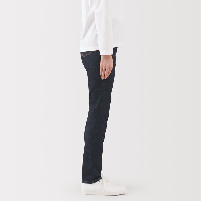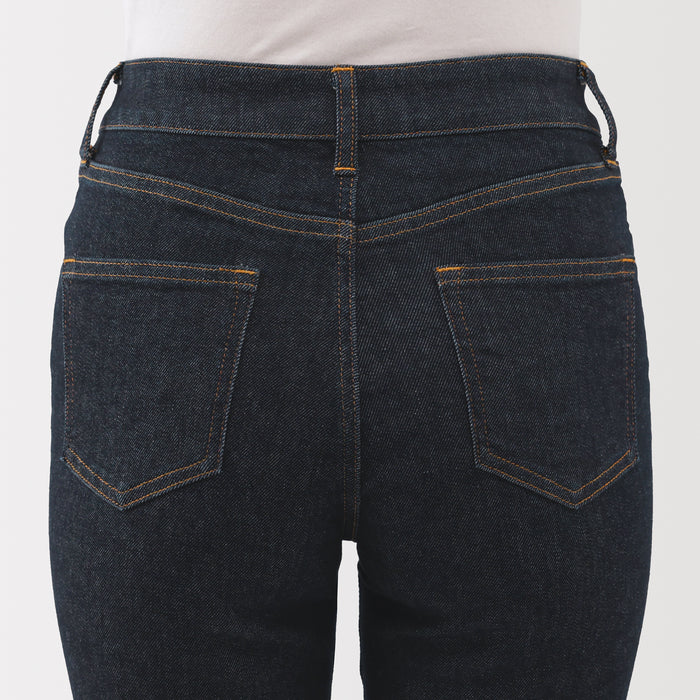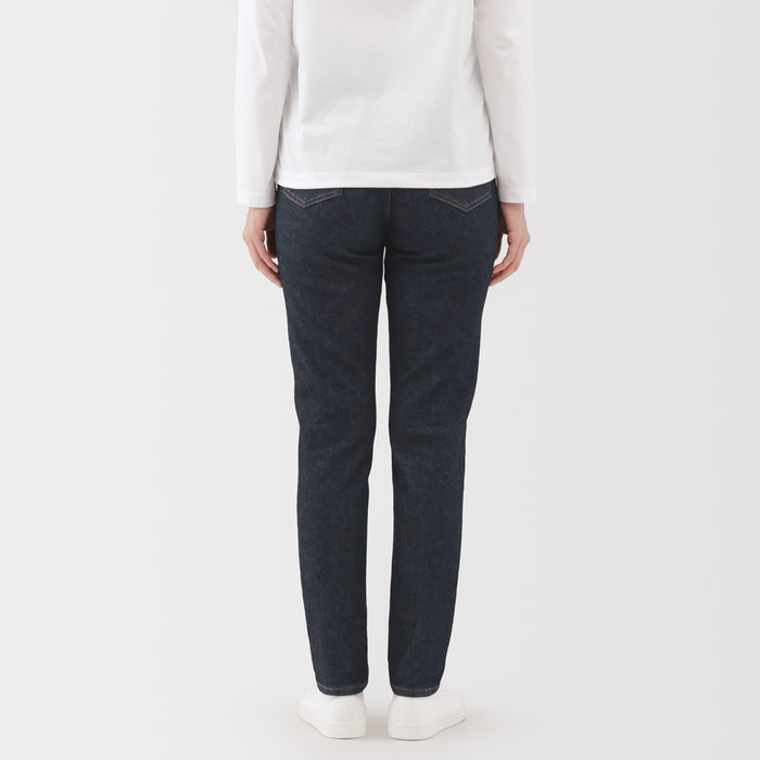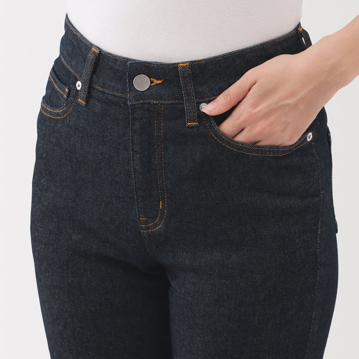 These women's denim pants are versatile for wearing all year round and can be easily styled with any outfit. The slim straight silhouette is a flattering on the body, and it is designed with a mid-rise waist for comfort. Made with organic cotton denim material that stretches horizontally for a fit that moves with you.