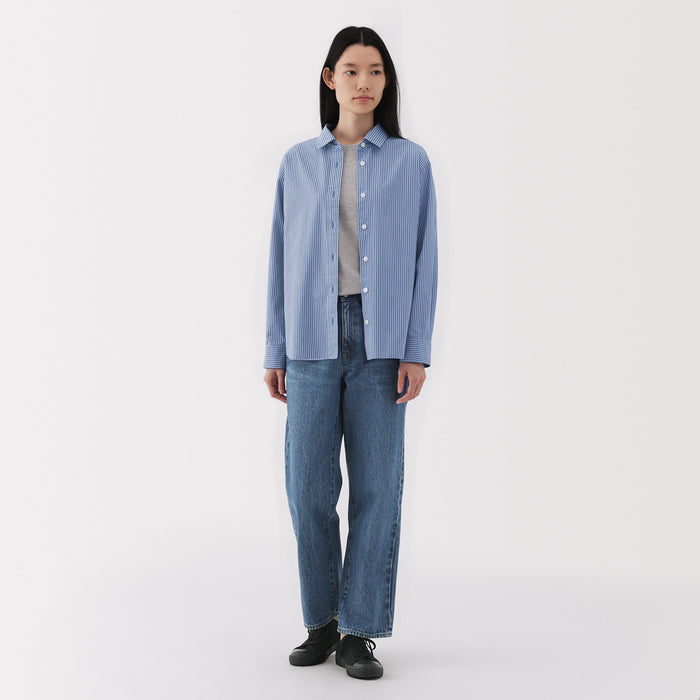 These denim straight pants are made from a blend of organic cotton and kapok fibers, making them lightweight and comfortable.
