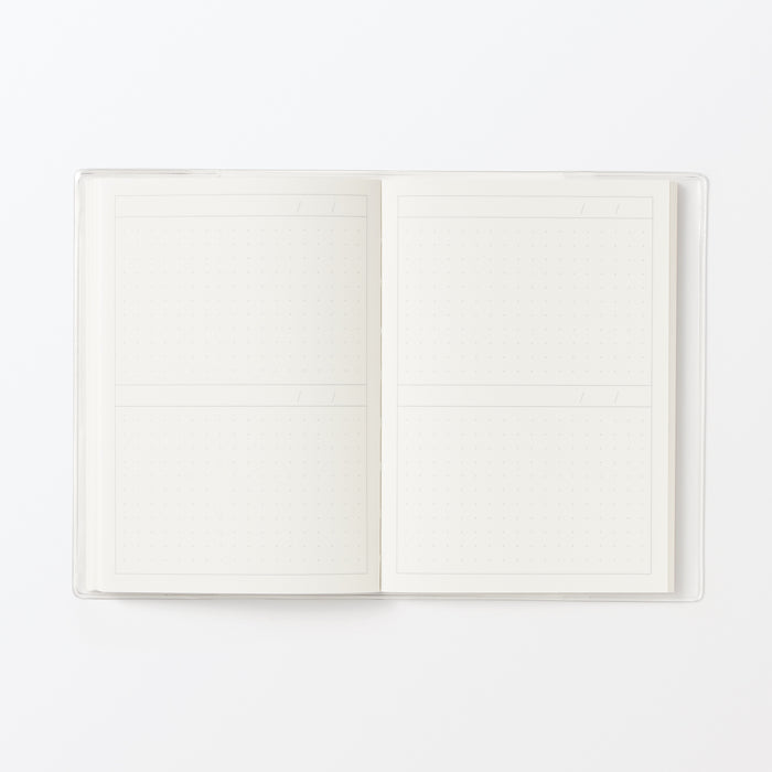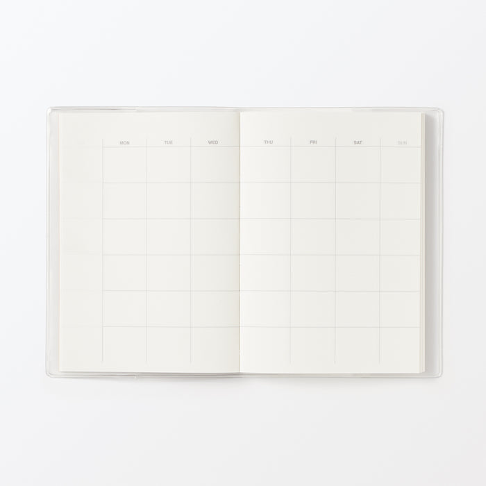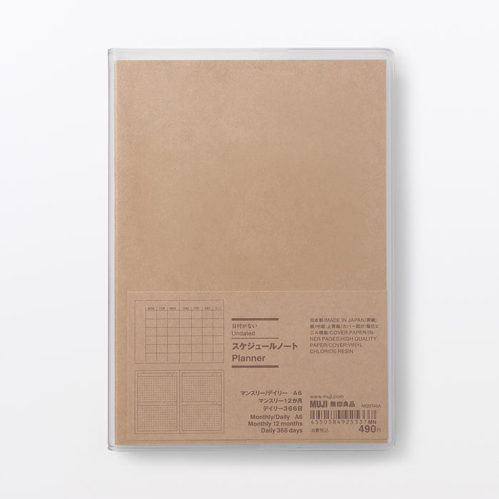 Capture your daily and monthly goals in one compact location with this portable A6 undated planner. This comprehensive schedule book features 12 months of horizontal, Monday-start monthly spreads followed by 366 daily boxes, allowing for a full year of flexible recording. With two undated daily sections per page, you have the freedom to manage your time or log memories at your own pace without the pressure of pre-printed dates. The high quality inner pages are protected by a durable, transparent vinyl chloride resin jacket, making it a perfect companion for on-the-go planning. Whether used for work, school, or personal life, this pocket-friendly planner adapts to your schedule whenever you are ready to start.