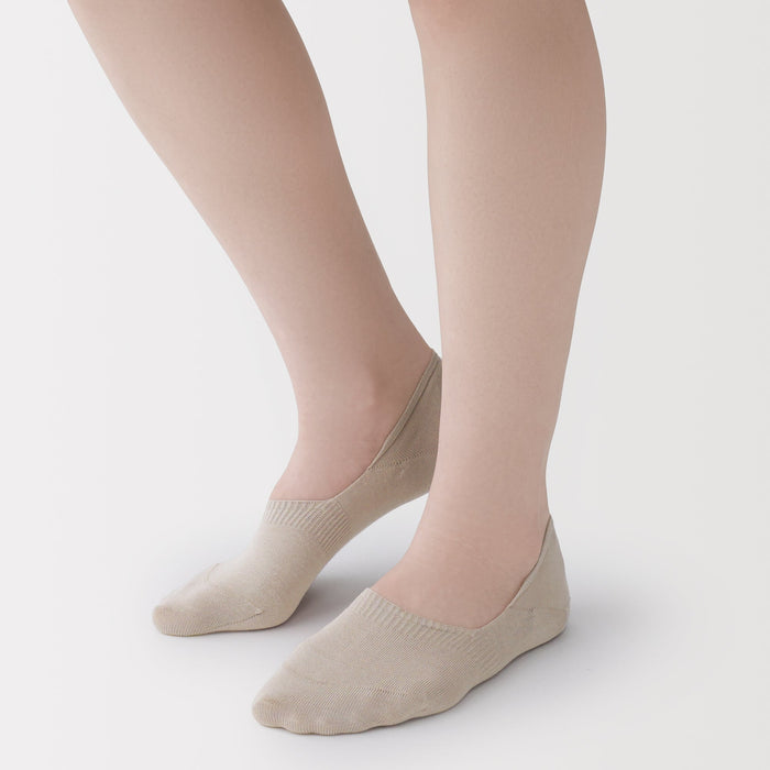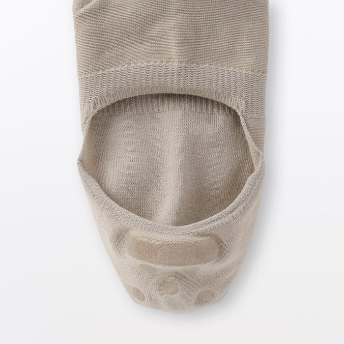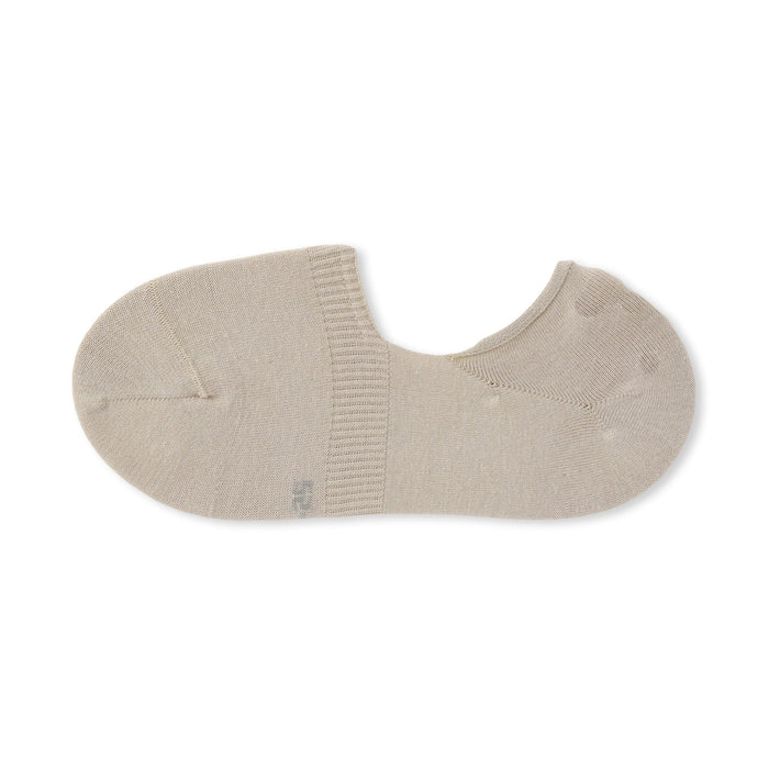No-show sneaker socks with silicone heel grips that prevent them from sliding down. The seam line on the toes are stitched flat to prevent discomfort, and the reinforced threading at the toes and heel has a sweat deodorizing effect.