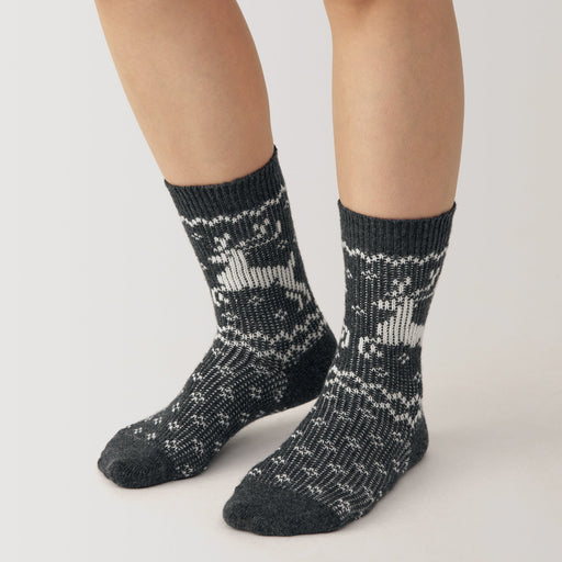 Warm socks that have a sweat deodorizing effect, made with cotton and wool and featuring a seasonal pattern. The heel of the socks is knitted at a ...
