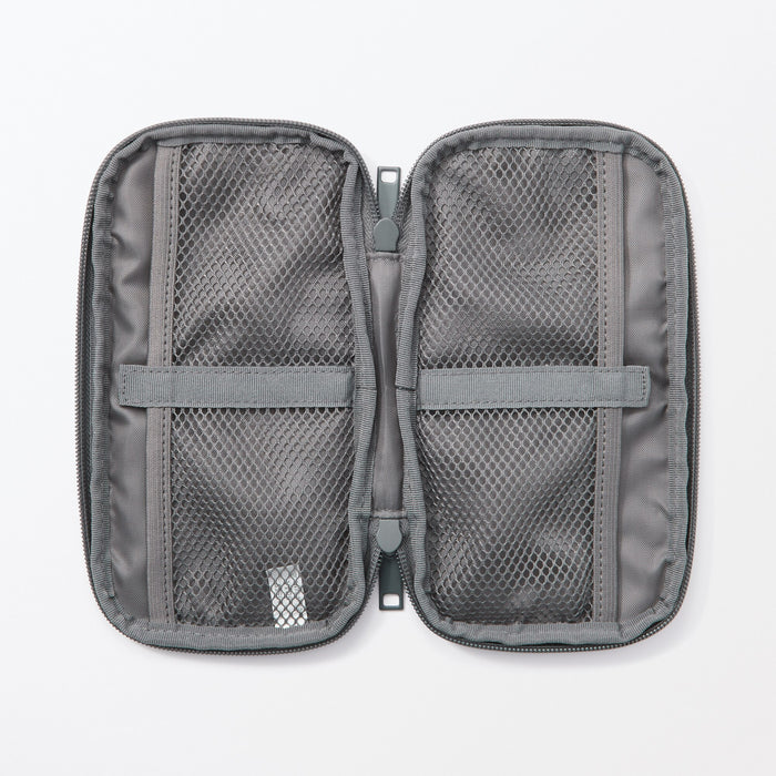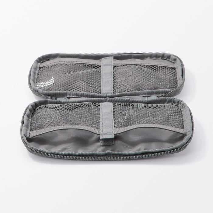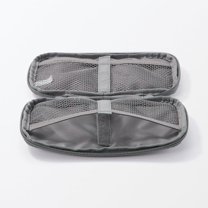 A slim zippered pouch designed to store and organize various gadgets, cables, and power adapters. The two mesh inner pockets can be adjusted into four pockets using the hook-and-loop fasteners as partitions to suit your organizational needs. Perfect for bringing with you on-the-go when travelling with electronics.