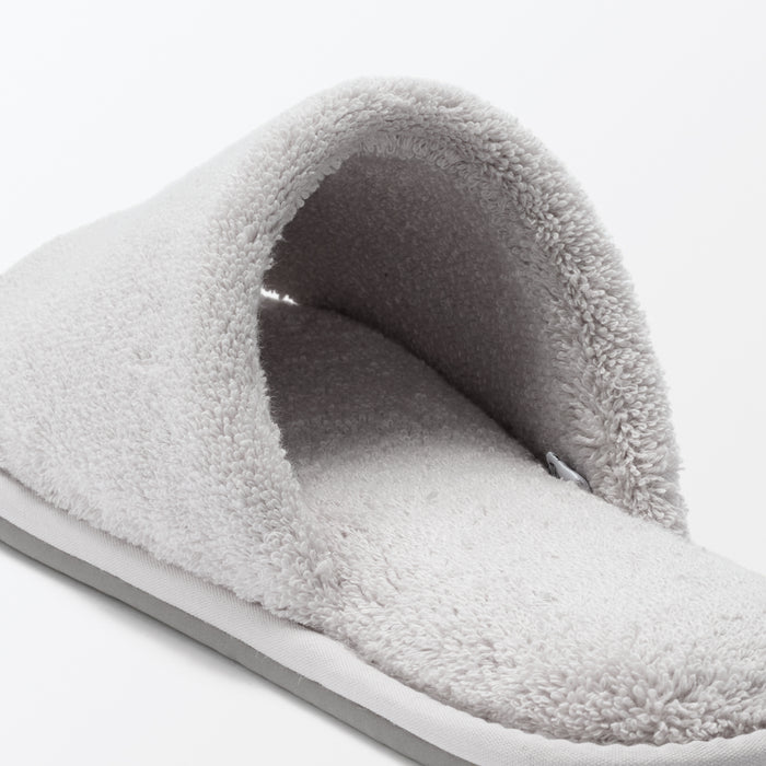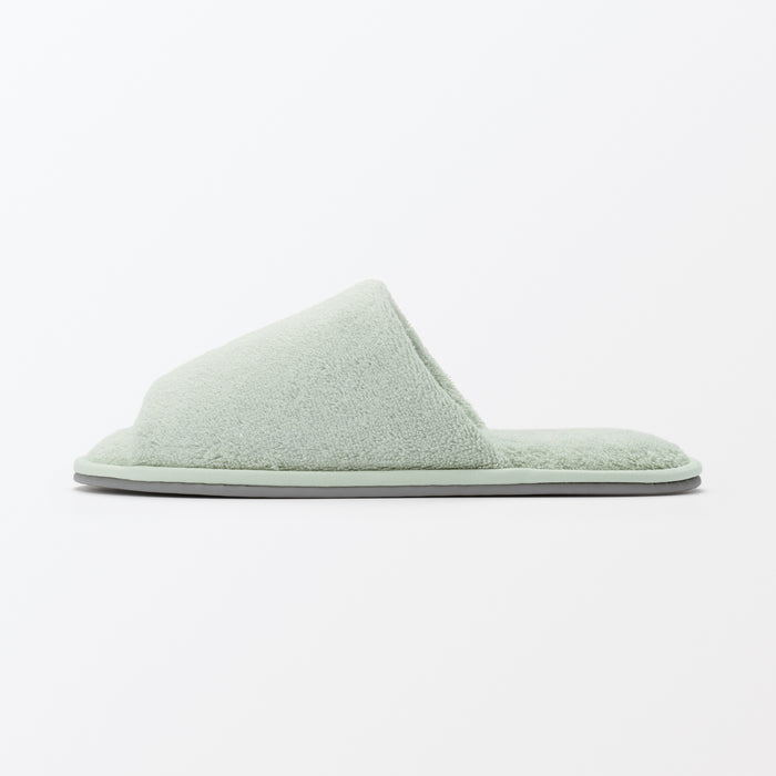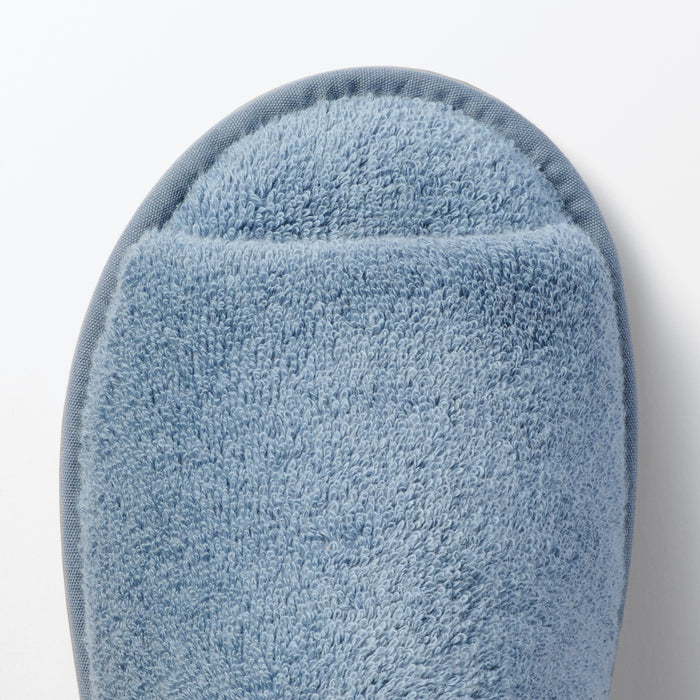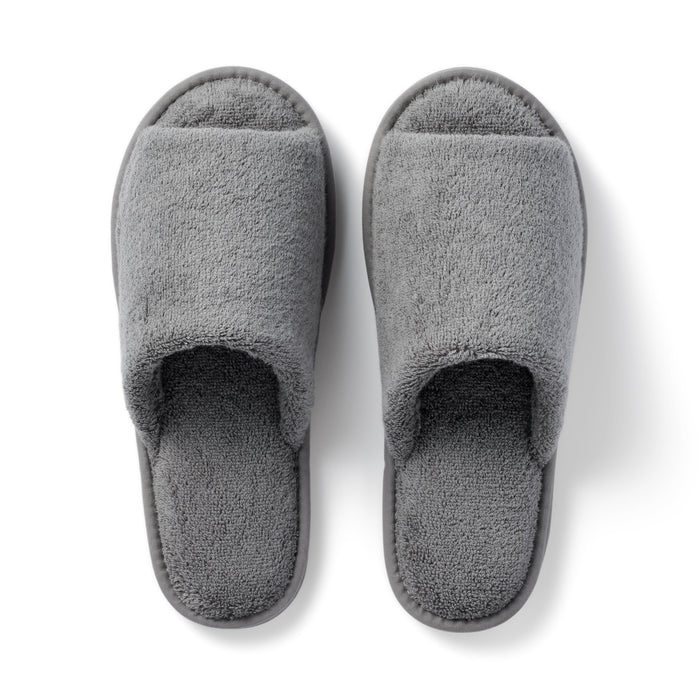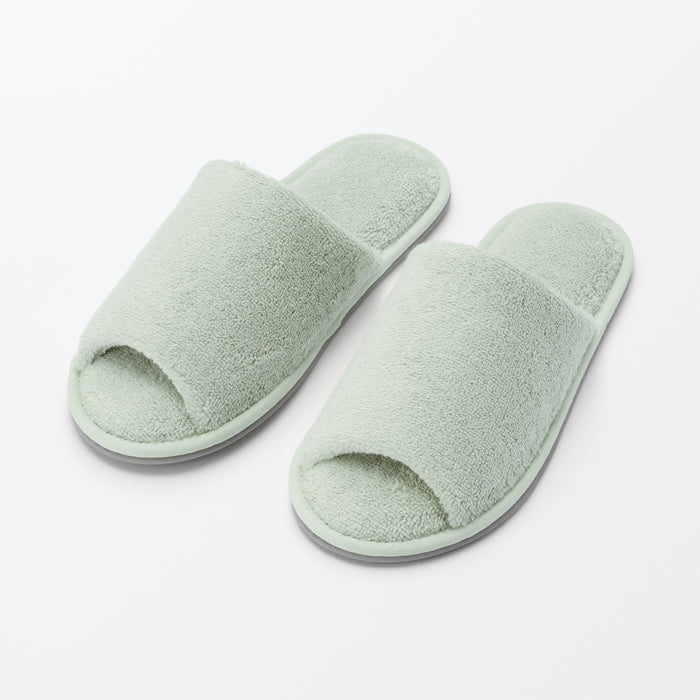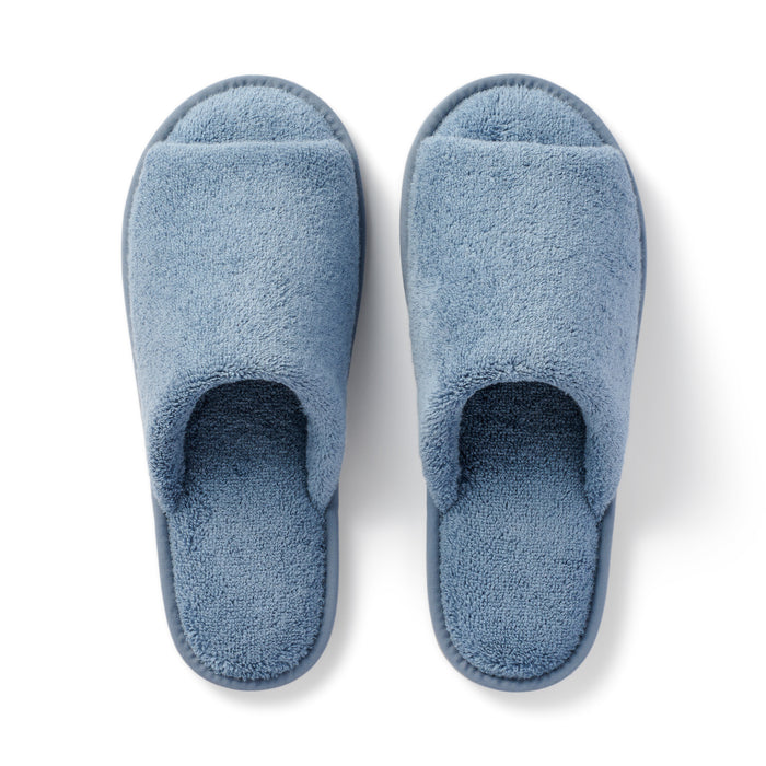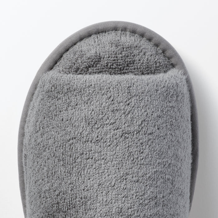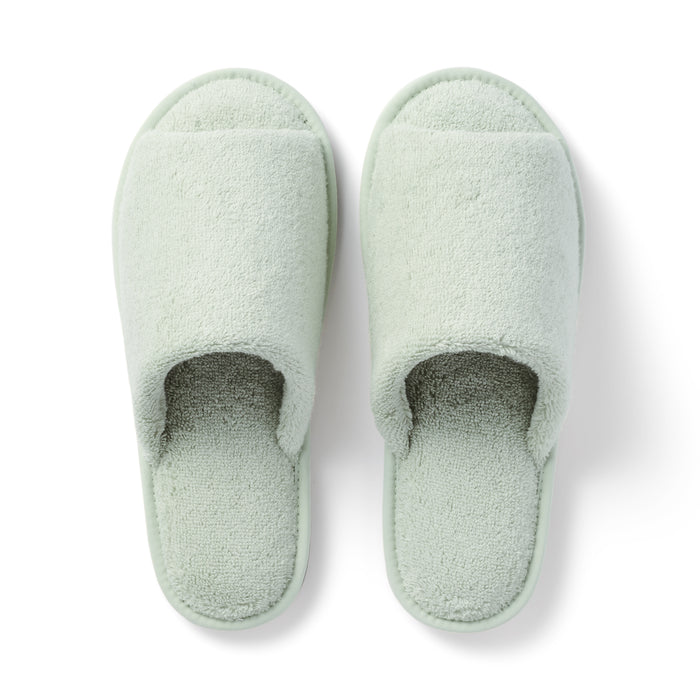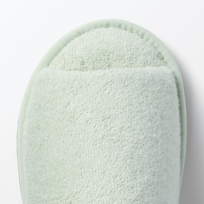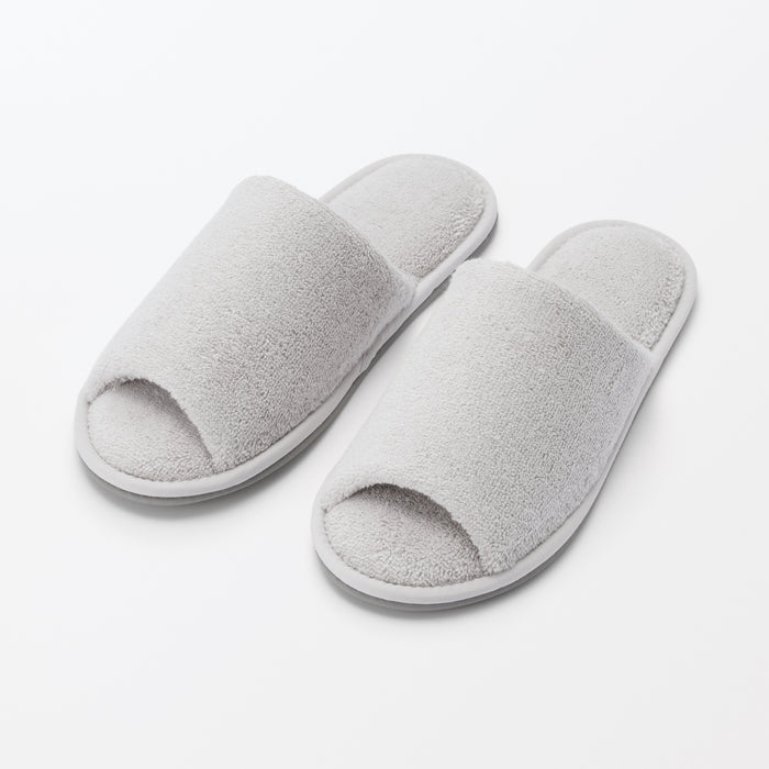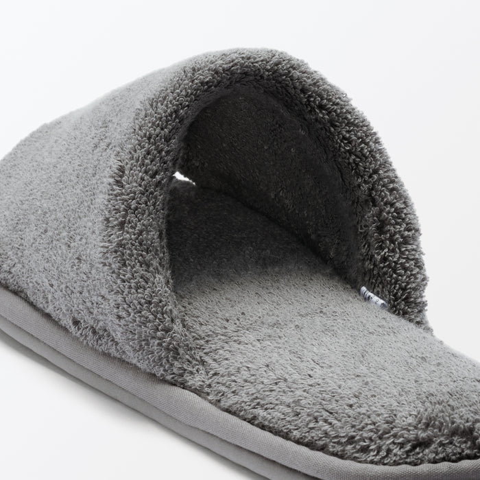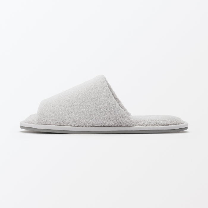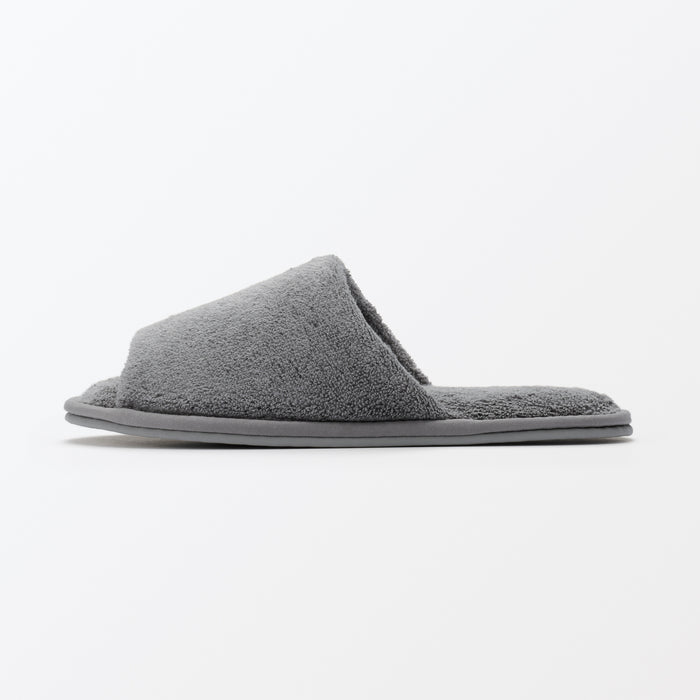 Wrap your feet in comfort with our fluffy open toe slippers, made from our cotton pile towel fabric. The fabric is made from soft and plump 100% cotton with cushioning underneath for comfort. The sole is coated with polyurethane to prevent slipping. Perfect for wearing after a bath or during the hot summer months, these slippers will keep your feet dry and comfortable thanks to their moisture-absorbing properties.