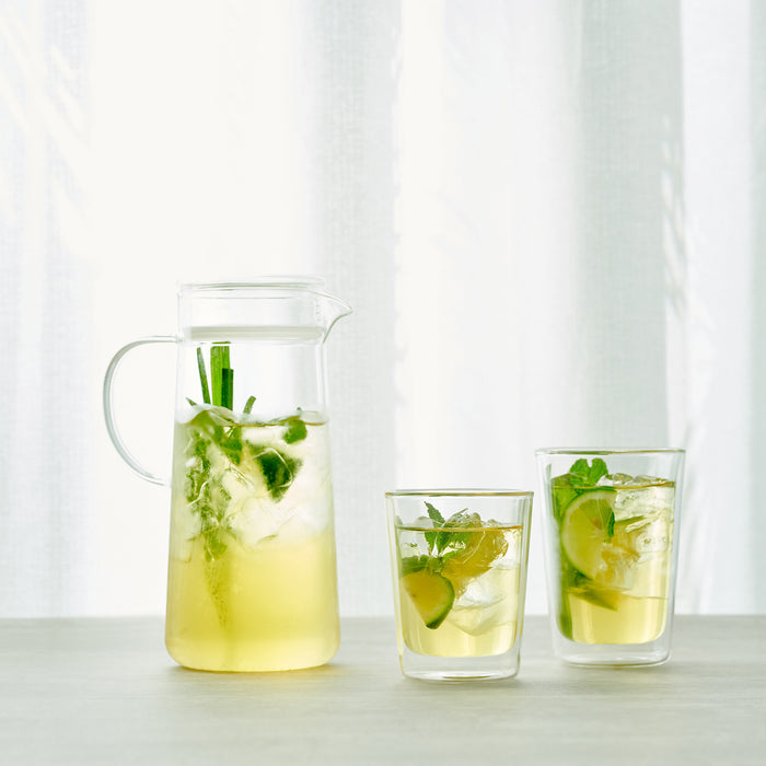 This sleek, heat-resistant glass pot can serve both hot and cold beverages, featuring a lid and spout for precise pouring without any mess. Perfect for serving your favourite drinks with elegance at any gathering, indoors or out.