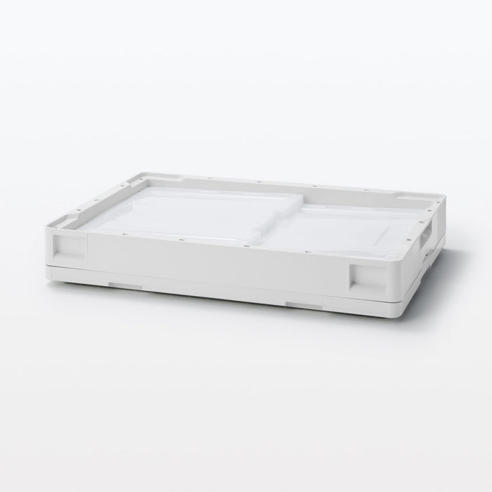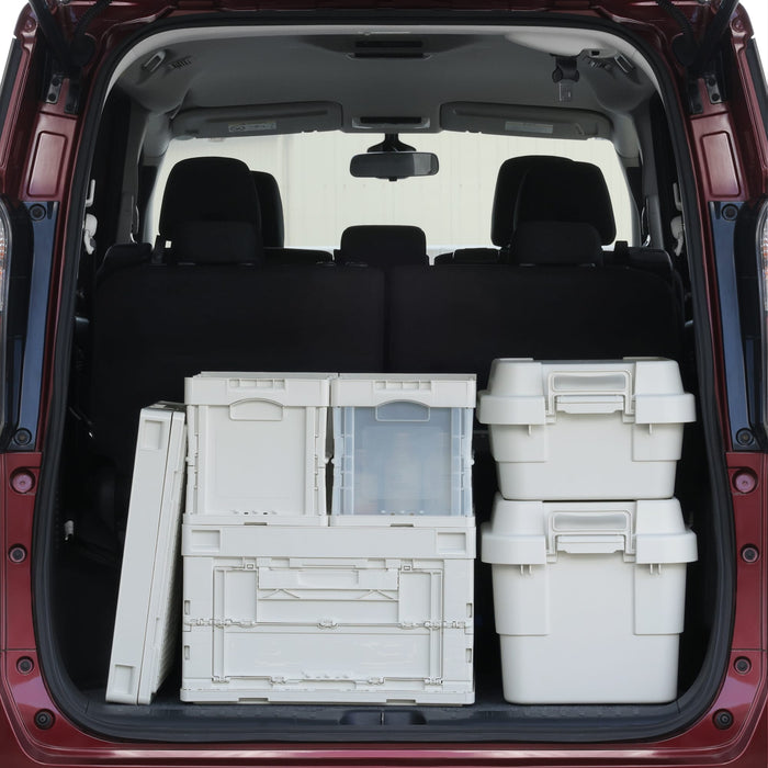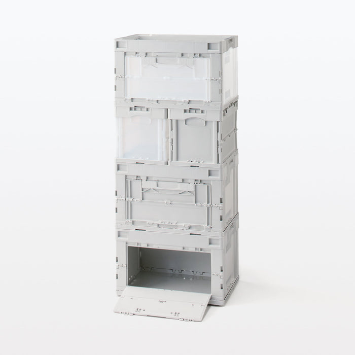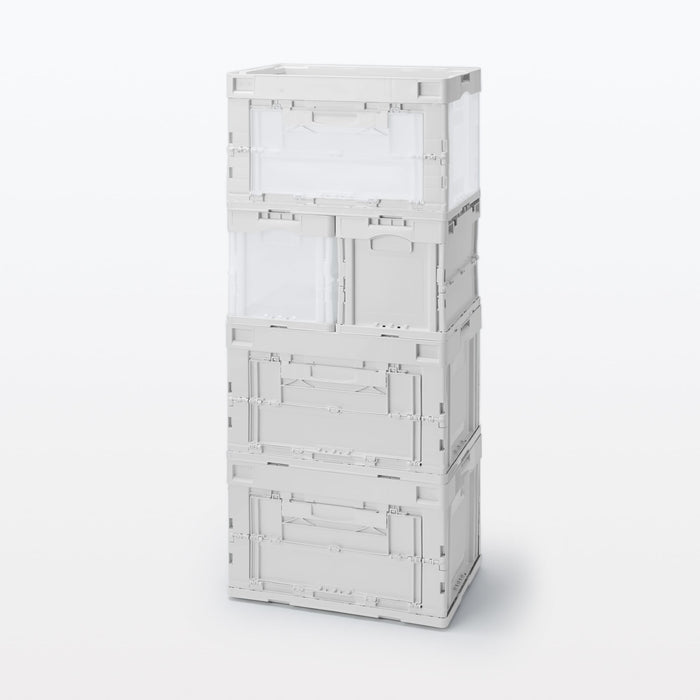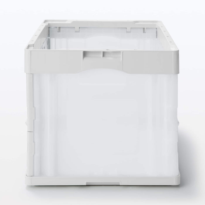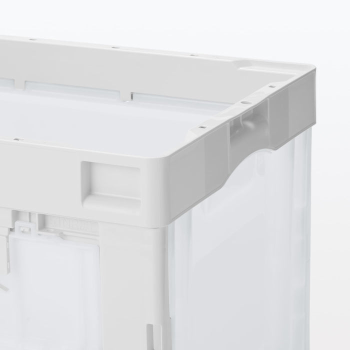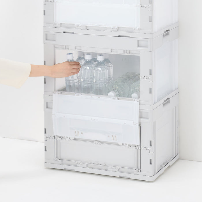 This durable translucent container box is used for transporting goods. It folds compactly when not in use and does not slip when stacked. It has an opening window on the side so you can access your items from the side.