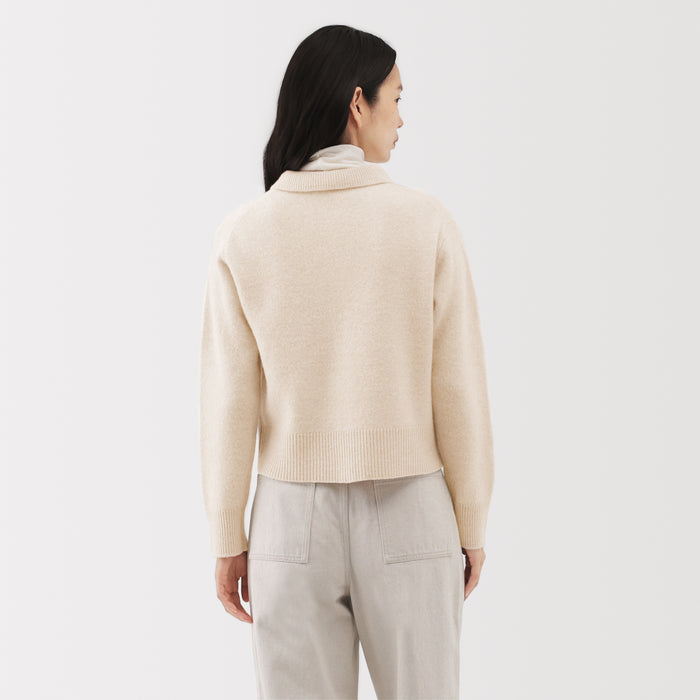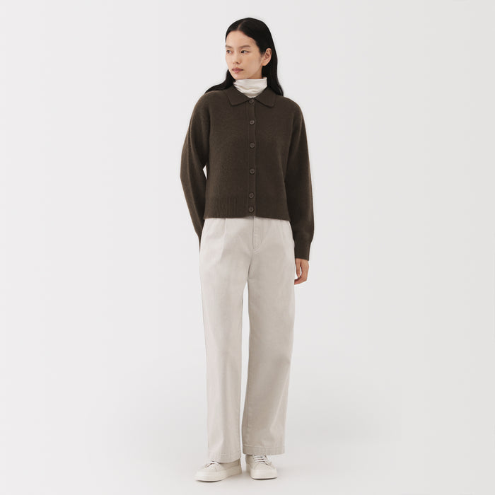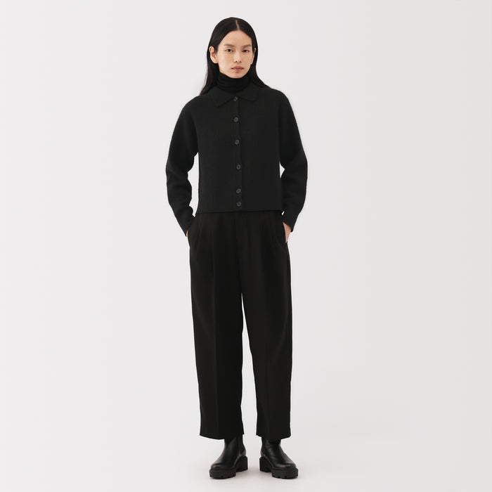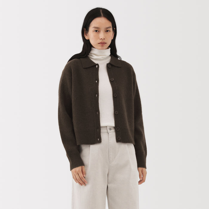 This luxuriously cozy cardigan is perfect to keep you warm in the colder seasons. Soft, delicate yak hair from the cold highlands is carefully combed and then blended with wool for a warm, fluffy knit. The two-way design offers versatile styling and can be worn as a pullover with the buttons closed, or as a cardigan with the buttons open.