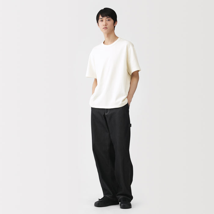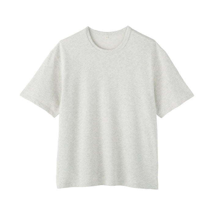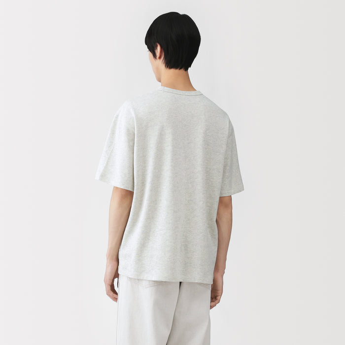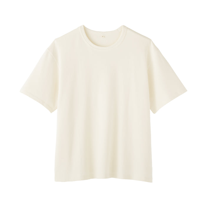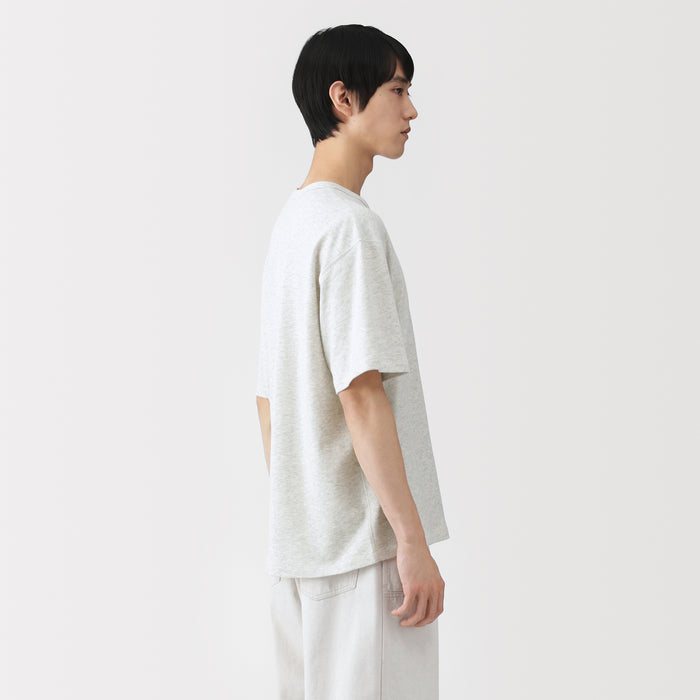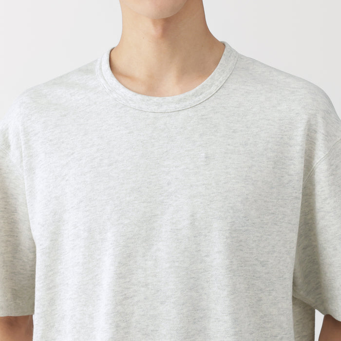 A men's crew neck short sleeve t-shirt made of 100% organic cotton that has an extremely soft, airy texture, knitted into a lightweight mini French terry fabric with fine loops. The relaxed silhouette is comfortable to wear when going out or lounging at home.