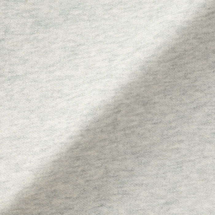 The softness of the fabric is achieved by using a traditional loopwheel machine, which knits very slowly from bottom to top to remove unnecessary tension on the yarn. Unlike modern high-speed machines that work top-to-bottom, causing fabric to sag due to its own weight, this slow and gentle process ensures a high-quality material with a fluffy, airy texture that is only possible with traditional knitting methods. The loopwheeling method may leave charming irregularities such as an uneven texture and a slub appearance that is unique to this traditional process.