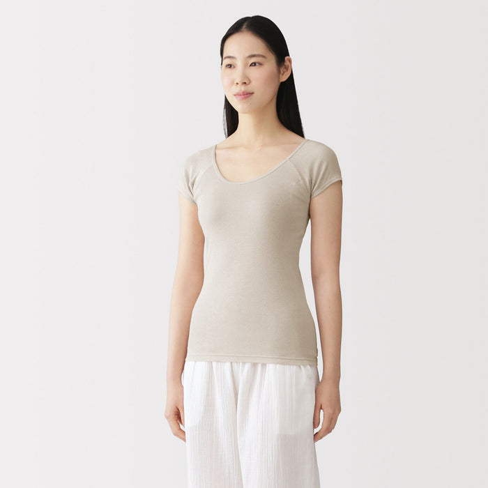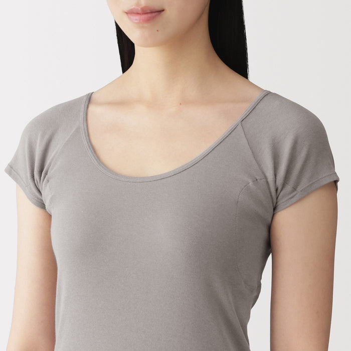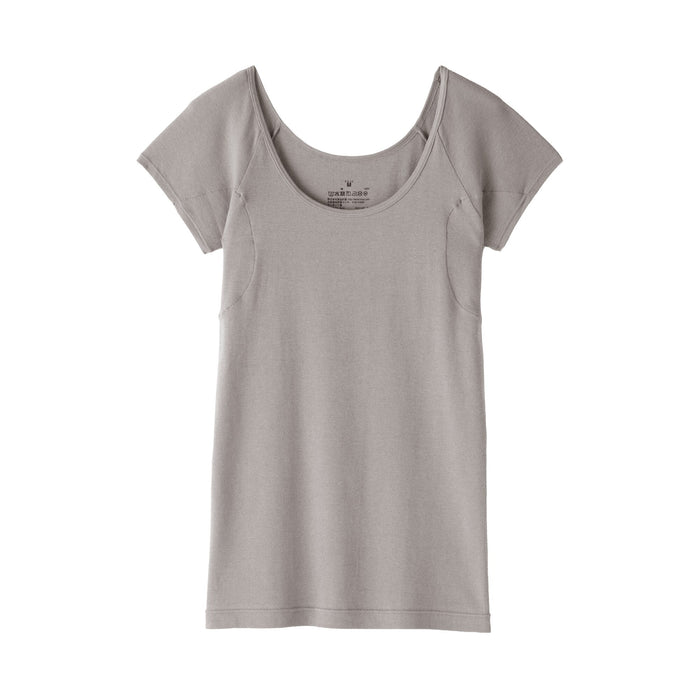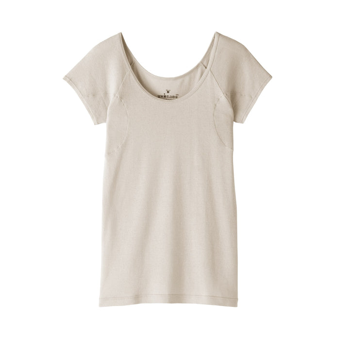 A French sleeve t-shirt with sweat pads under the arms to help keep you dry throughout the day and prevent sweat stains on your outer layers. Made from a lightweight, breathable organic cotton material that feels cool on the skin, making it comfortable to wear even in warm weather. To prevent irritation, there are no side seams, and care labels and tags are printed on the inner side of fabric.