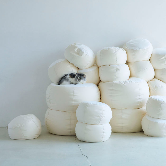 Its shape is organic and familiar, like a curled-up animal or a large marshmallow. This mini cushion supports your body by adapting to the subtle changes in your posture in each situation, whether you're reading a book, watching TV, or just relaxing. When you apply pressure, the beads inside move to fit your body.