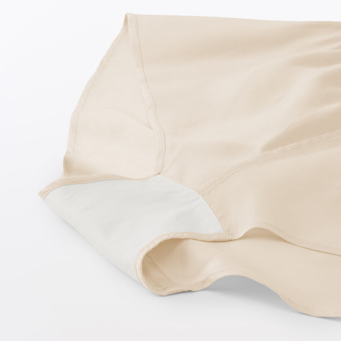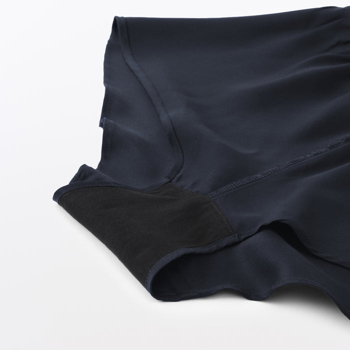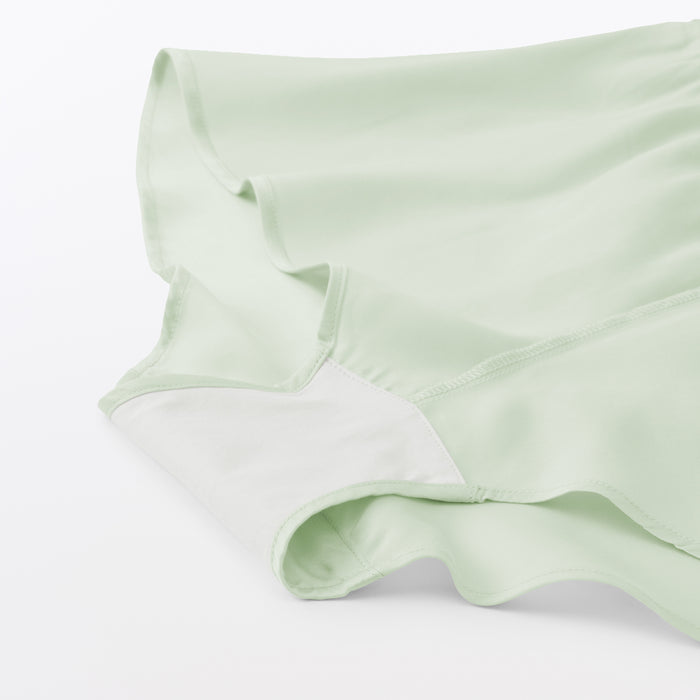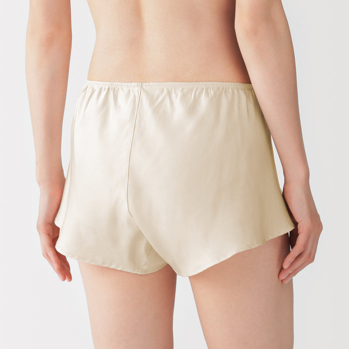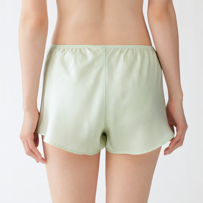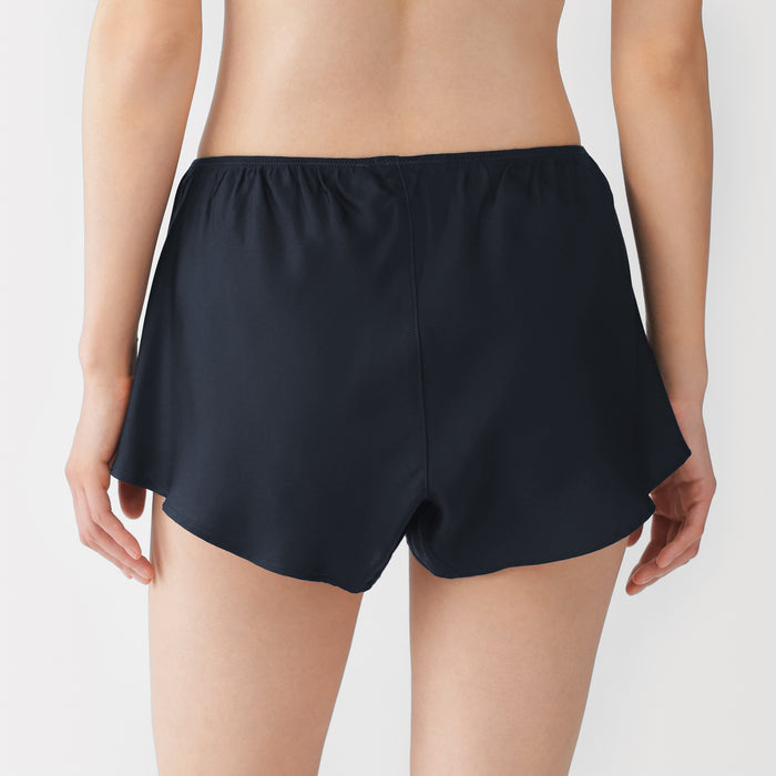 The soft flared silhouette of these women's bloomer shorts provides a comfortable fit. Using satin made of lyocell, a regenerated cellulose fibre primarily made from wood, the material is luxuriously soft and smooth on your skin to provide a cooling feel when worn. The cotton gusset also removes seams from the crotch area for comfort, so these shorts can be worn as standalone underwear or safety shorts underneath skirts and dresses.