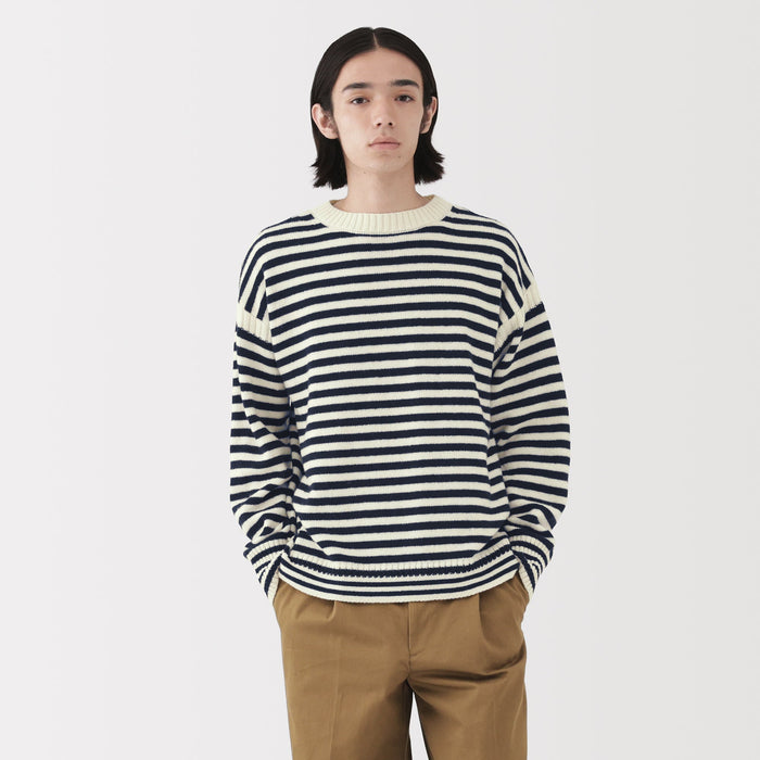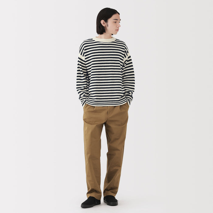 This men's wool crew neck sweater features wool harvested from animals in the upper elevations of the Andes mountains in South America. Its wool offers excellent warmth for layering.