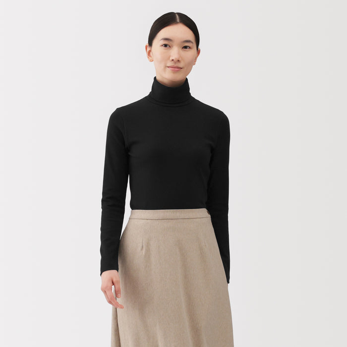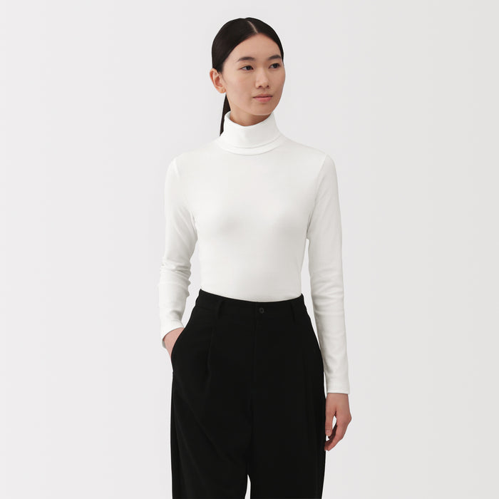 A ribbed turtleneck t-shirt with a lightly brushed interior for a warm, smooth texture that is soft on the skin. Made with organic cotton.