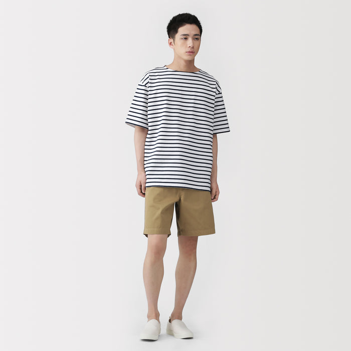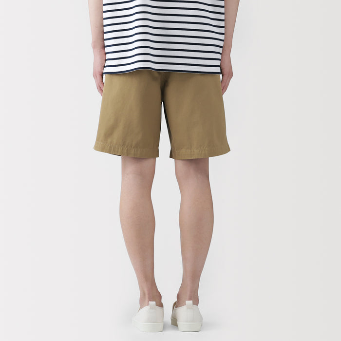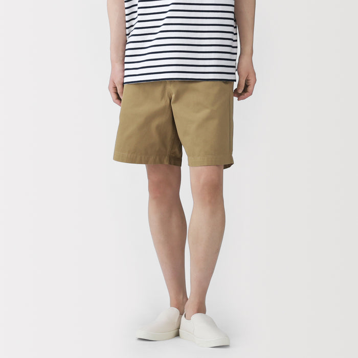 Comfortable men's shorts made with a soft organic cotton chino fabric. The elasticized back and hidden adjustable drawstring in the waistband ensures the perfect fit.