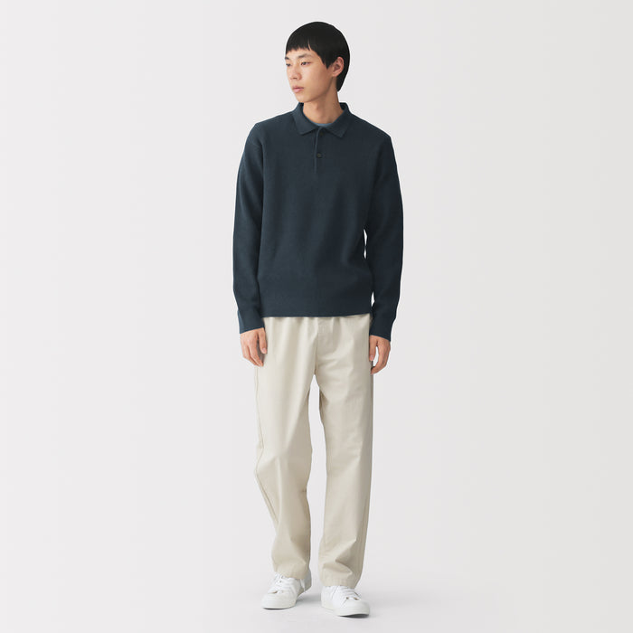 This men's sweater features a polo collar and offers the warmth and softness that only cotton can provide. The rib knit is thick and stretchy, made with a cotton polyester blend that is comfortable to wear all day. Washable and easy to care for at home for convenience.