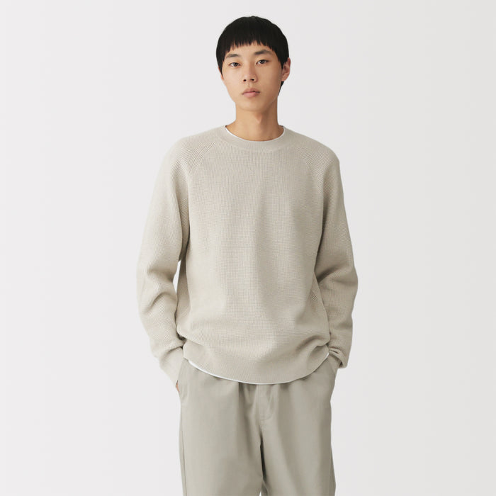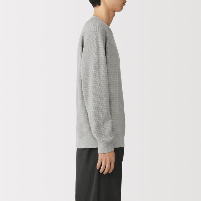 This men's crew neck sweater offers the warmth and softness that only cotton can provide, made with a comfortable cotton polyester blend. The featured waffle knit texture gives it a casual, relaxed look that is perfect for everyday wear. Washable and easy to care for at home for convenience.