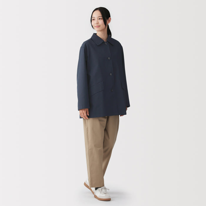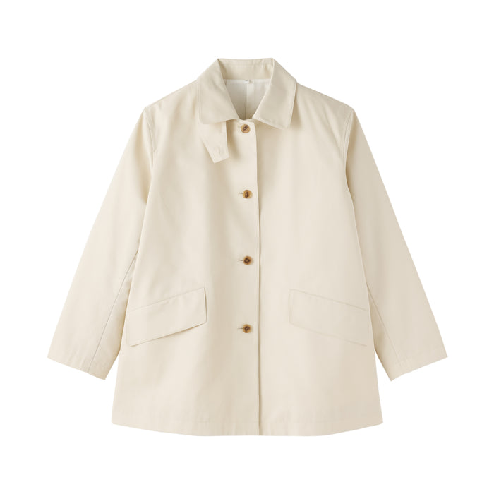 This women's half-length coat is made from a sturdy organic cotton twill fabric with a water-repellent finish.