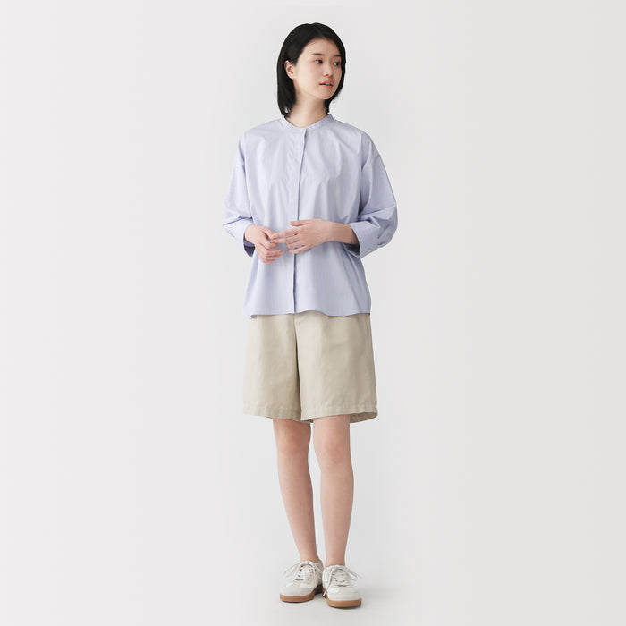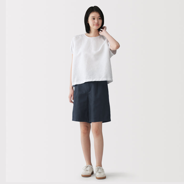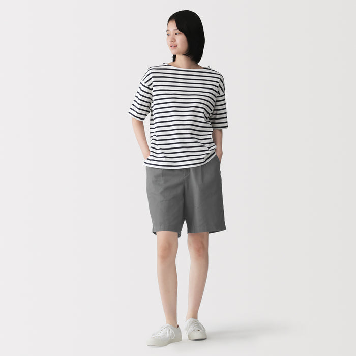 Enjoy all-day comfort in these women's twill short half pants, made with a soft organic cotton material that features a hemp-like texture. High-waisted with a relaxed, straight leg silhouette, these pants are a stylish and versatile piece for any spring wardrobe.