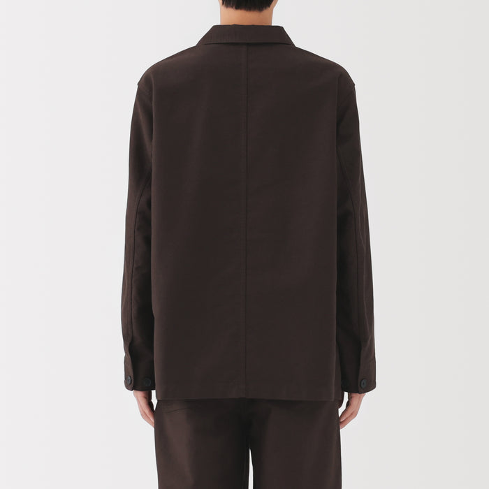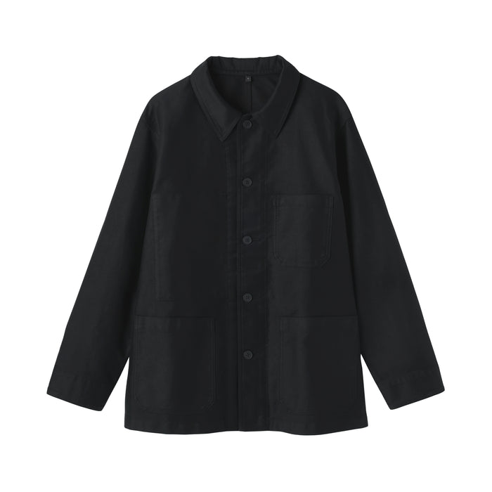 A French workwear-style jacket with a loose silhouette that is perfect for everyday wear, featuring a natural, lightweight blend of kapok and organic cotton for a comfortable fit. The soft, suede-like texture of moleskin brings a refined look to any outfit while also keeping you warm. The more it is worn, the more it softens and conforms to your body, developing a unique texture that you can enjoy over time.