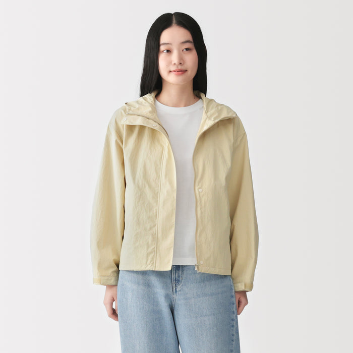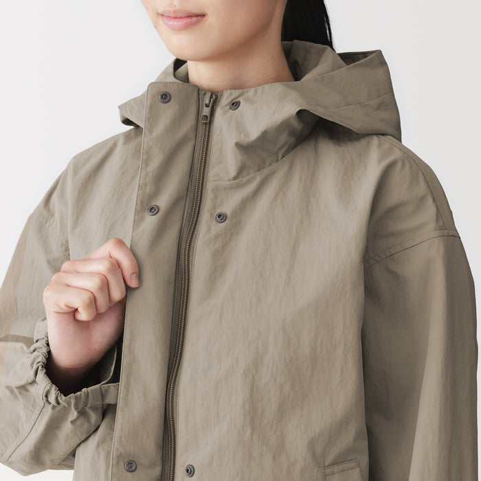 Stay comfortable and dry during outdoor activities with this versatile women's water-repellent hooded jacket. When not in use, it can be folded up into the pocket for convenient and compact storage, making it a great choice for travel.