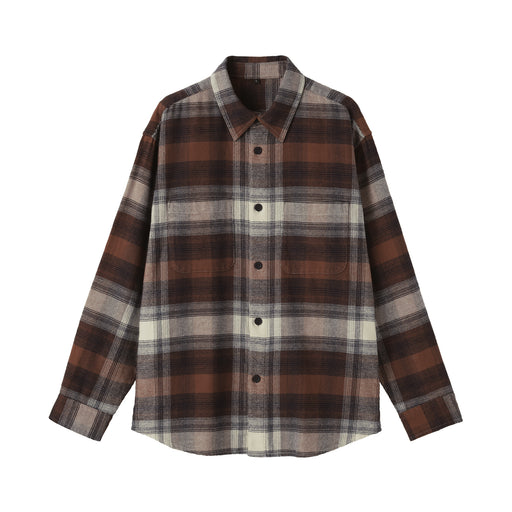 A women's cotton flannel shirt with a regular collar and relaxed drop shoulder design. Made with fabric that is brushed on both sides for a soft te...