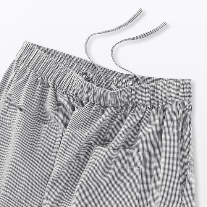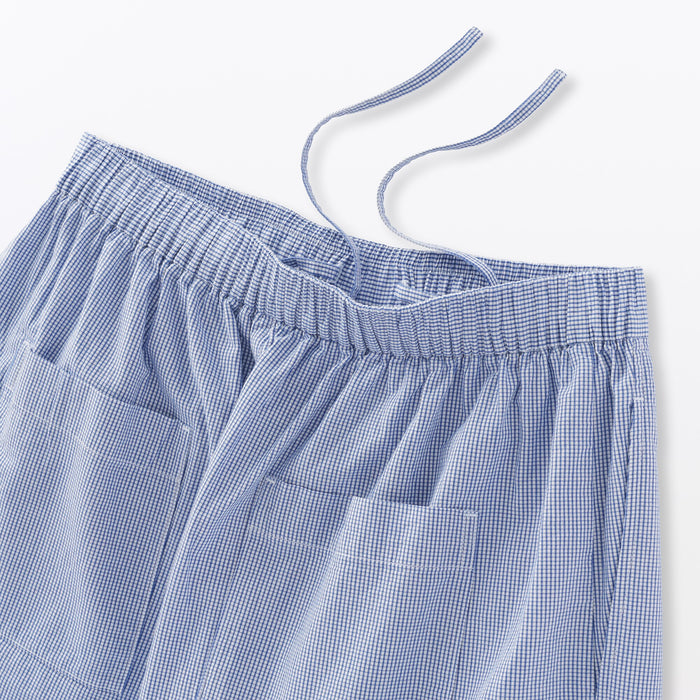 The calf-length design and front box pleats make them look like a skirt, made with just the right amount of volume. The elastic waistband is adjustable with a drawstring on the inside of the pants.