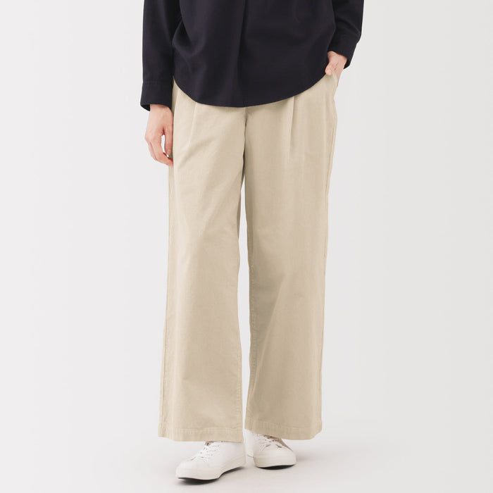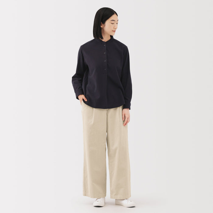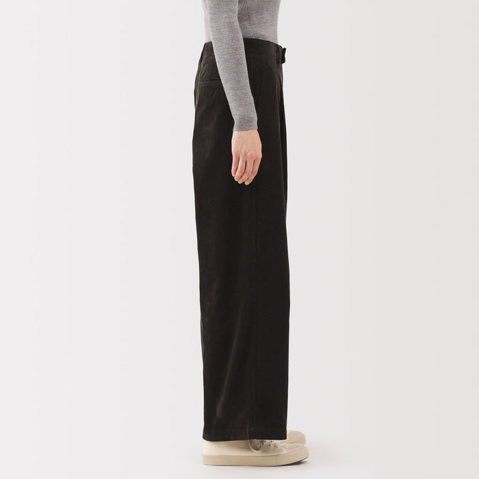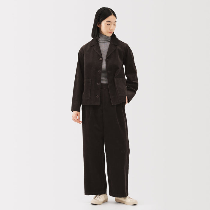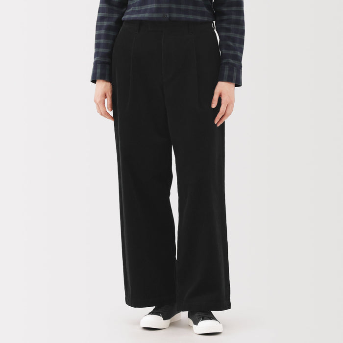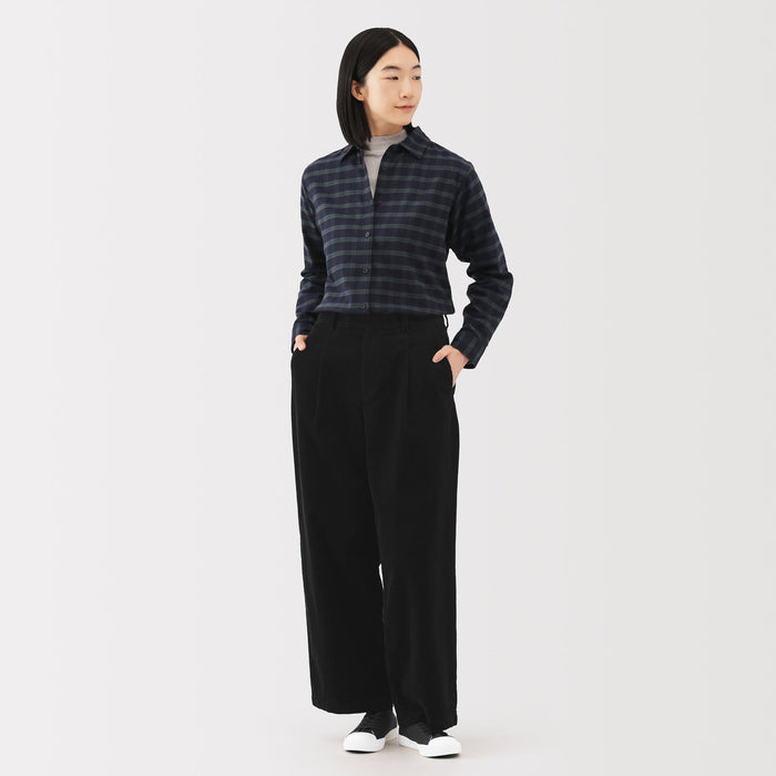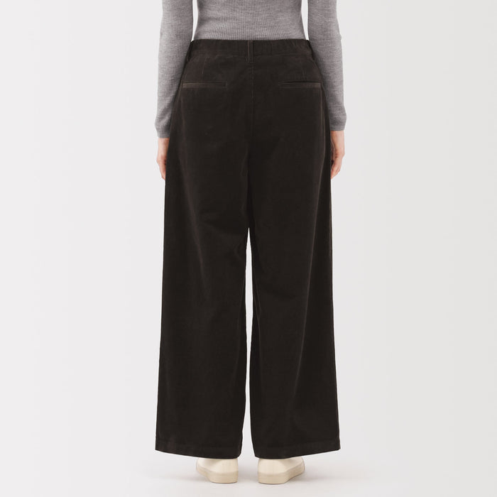 These women's corduroy wide pants are made with a blend of organic cotton and natural kapok fibre for maximum comfort and breathability. The front of the pants feature pleats for a clean and polished appearance. The back of the waistband is elastic for a comfortable fit that is easy to wear.