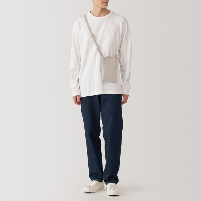 A compact, shoulder-slung pouch with an inner pocket and card holder. It has a water repellent coating and is great for short outings.