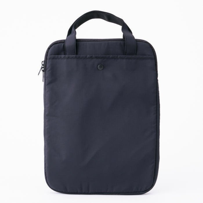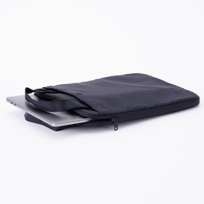 This simple vertical laptop bag is made from lightweight, durable parachute cloth fabric with a water-repellent finish.
