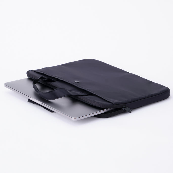 This simple horizontal laptop bag is made from lightweight, durable parachute cloth fabric with a water-repellent finish.