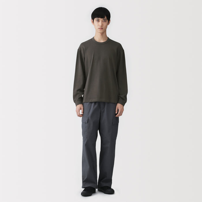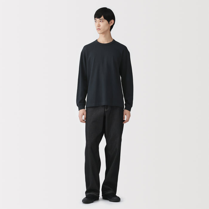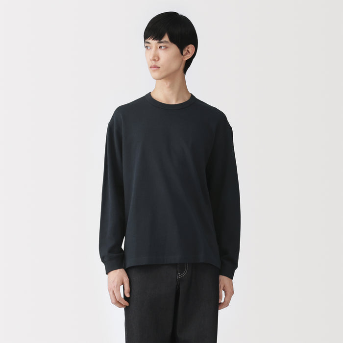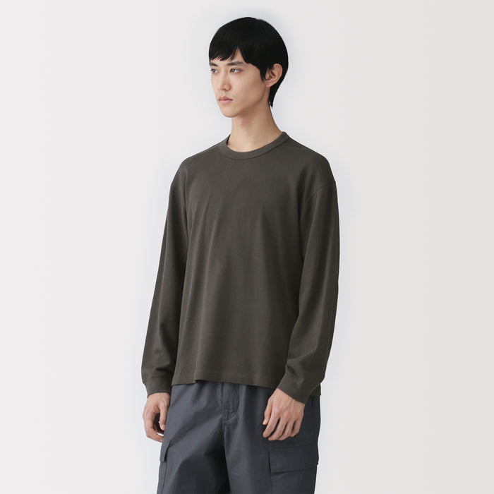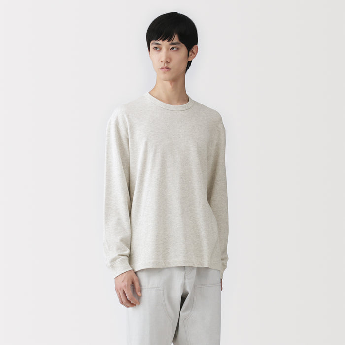 A men's long sleeve t-shirt made of an organic cotton material that has an extremely soft and airy texture. The relaxed silhouette is comfortable to wear when going out or lounging at home.