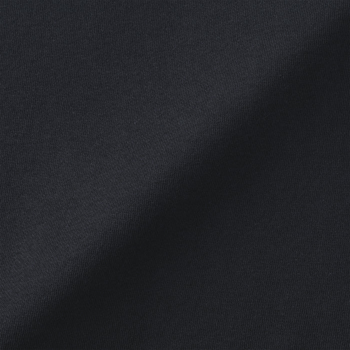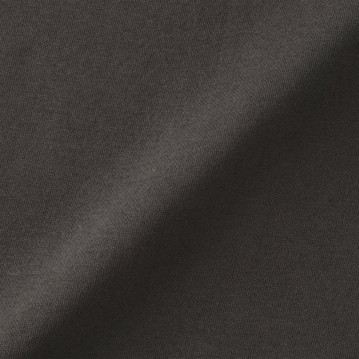 The softness of the fabric is achieved by using a traditional loopwheel machine, which knits very slowly from bottom to top to remove unnecessary tension on the yarn. Unlike modern high-speed machines that work top-to-bottom, causing fabric to sag due to its own weight, this slow and gentle process ensures a high-quality material with a fluffy, airy texture that is only possible with traditional knitting methods. The loopwheeling method may leave charming irregularities such as an uneven texture and a slub appearance that is unique to this traditional process.