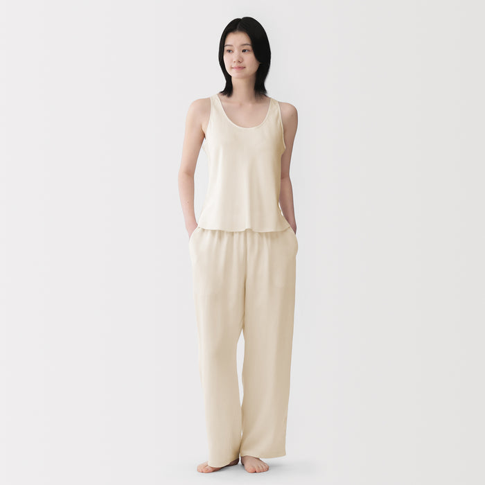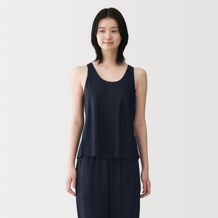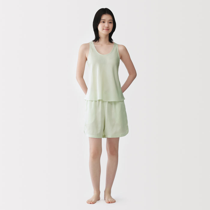 This tank top features a loose, flared silhouette for comfort lounging and a fabric that feels luxurious on the skin. Using satin made of lyocell, a regenerated cellulose fibre primarily made from wood, the material is soft and smooth on your skin to provide a cooling feel when worn.