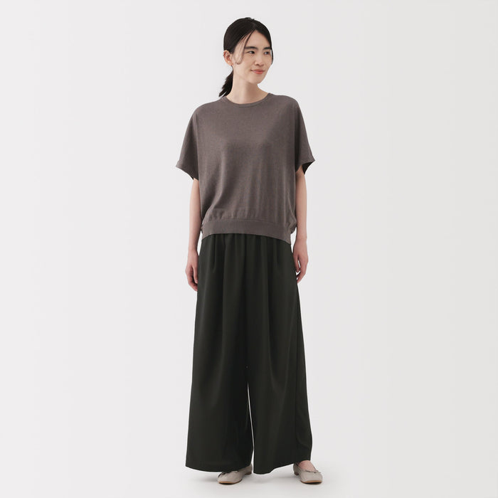 These women's wide pants feature a loose silhouette that is comfortable to wear all day and an adjustable drawstring waistband for easy wearing. Made from a silky smooth blend of lyocell and recycled polyester, the fabric is soft, lightweight, and resistant to creasing after washing. The surface of the lyocell fabric has a cooling feel so it is suitable for everyday wear, even during the hot summer months.