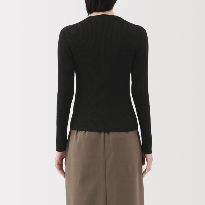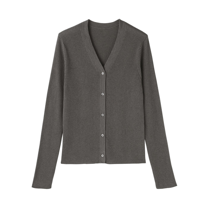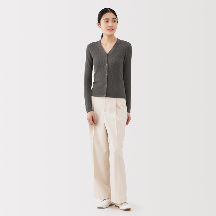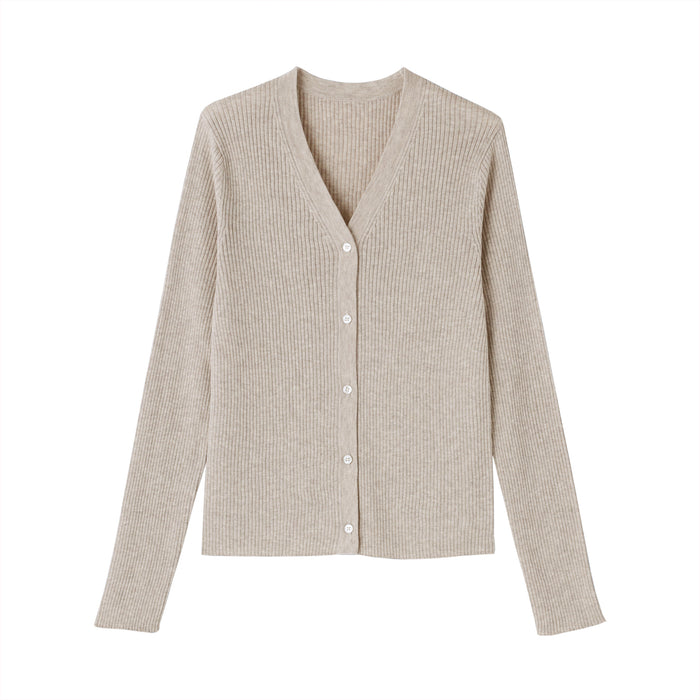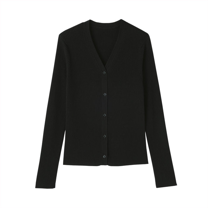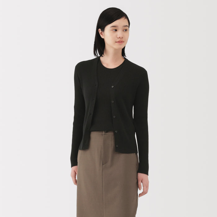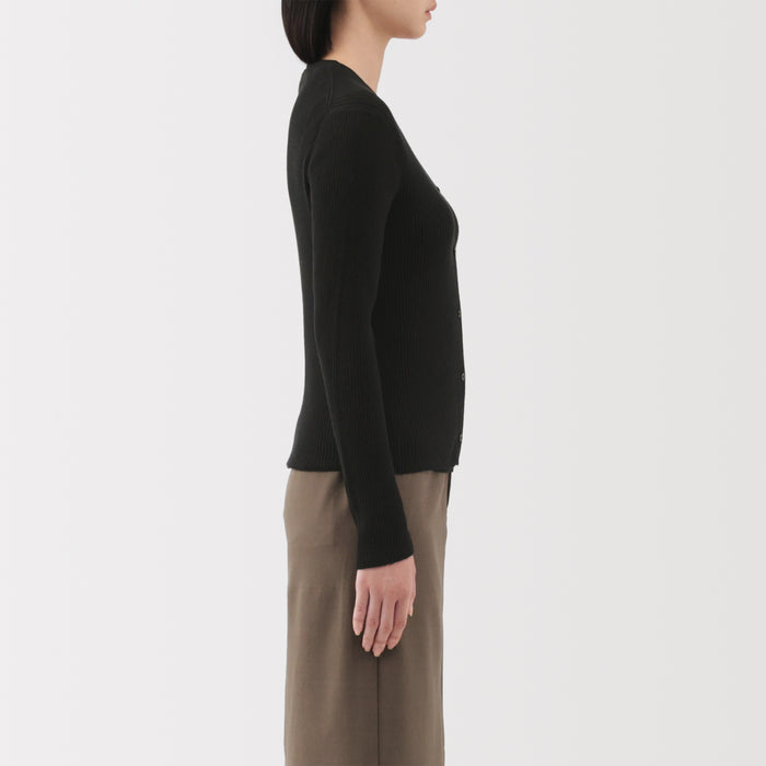 A cardigan made from a blend of organic cotton and lyocell that is soft and smooth to the touch. It has a fitted silhouette with a flattering rib knit design for a clean, refined look.