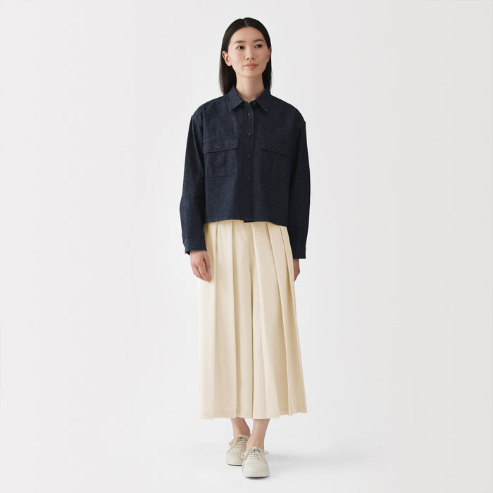 Wide hakama pants based on the traditional Japanese outfit. Simplified into a design that is easy to move around in and can be worn everyday. Made from a lightweight double-layered material with just the right thickness.