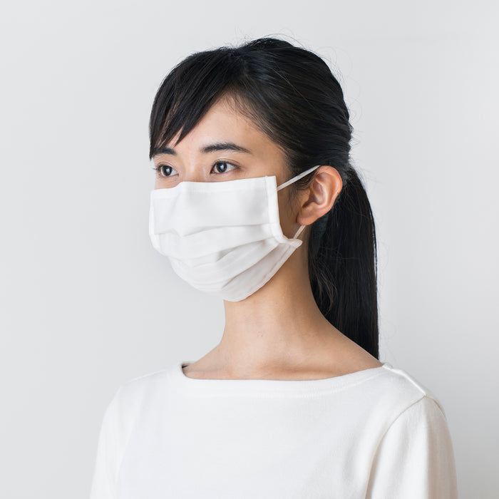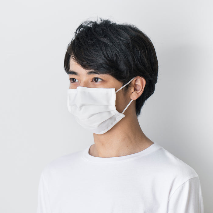 A face mask made of 100% cotton* which has excellent breathability and internal droplet absorbency. There is antibacterial processing on the external part of the mask surface to prevent droplet splashes. The masks are reusable and can be washed approximately 30 times. There may be a slight odor when first opened, it is recommended to wash once before use.