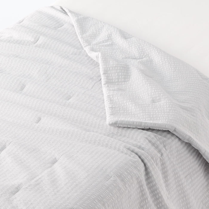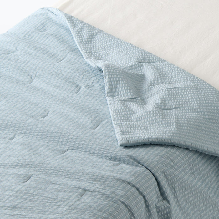 Ideal for sleeping in air conditioned rooms during the summer. Its thin and compact design takes up minimal space when not in use and the seersucker weave adds an uneven texture for breathability and a soft touch. Enjoy a refreshing sleep experience with this duvet.