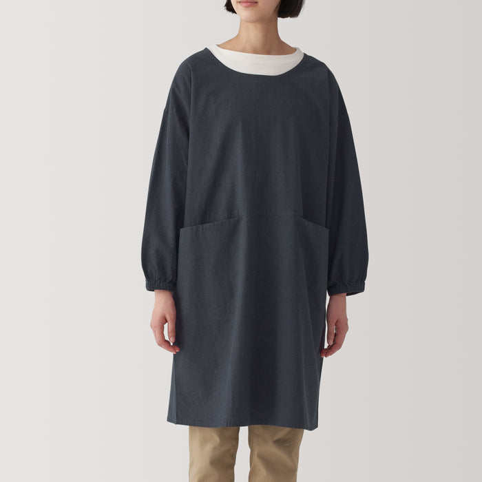 This cotton apron features a comfortable wide neckline for effortless pullover wear. Designed with practicality in mind, it includes spacious pockets and a convenient towel loop to keep essentials within reach while you work.