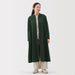 This dress can be styled on its own with optional leggings underneath, or worn unbuttoned over an outfit for an elevated look.