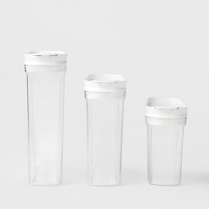 Created for ease and efficiency, these storage containers feature a slim, stackable design that saves space, and an air-tight lid to help lock in freshness. Its body is transparent so you can easily view its contents when stored in the pantry. The flip-top lid design allows you to easily pour out and access the contents, with a removable sealing silicone ring for simple cleaning.