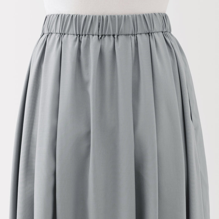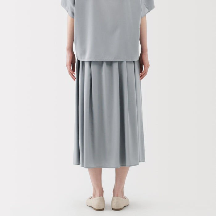 A long skirt with a flattering flared silhouette for a feminine look and an adjustable waistband that makes it easy to wear. Made from a silky smooth blend of lyocell and recycled polyester, the fabric is soft, lightweight, and resistant to creasing after washing. The surface of the lyocell fabric has a cooling feel so it is suitable for everyday wear, even during the hot summer months.