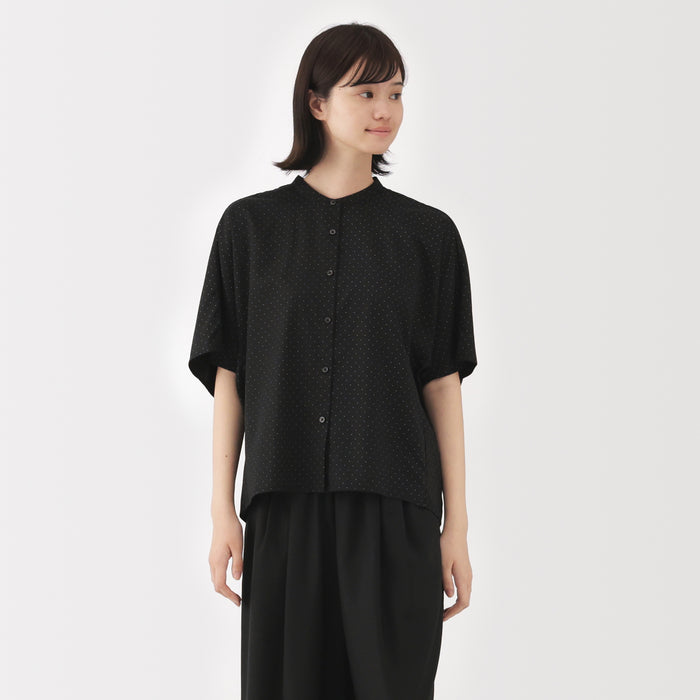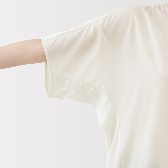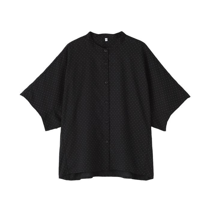 Made using recycled natural fibres, this button-up blouse is lightweight and smooth. It features loose dolman sleeves and a relaxed, feminine silhouette that is comfortable to wear.