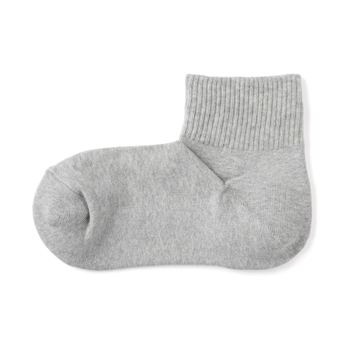 Soft pile-knitted sole with a sweat de-odorizing effect. The heel of the socks is knitted at a right angle to wrap comfortably and naturally around the heel.