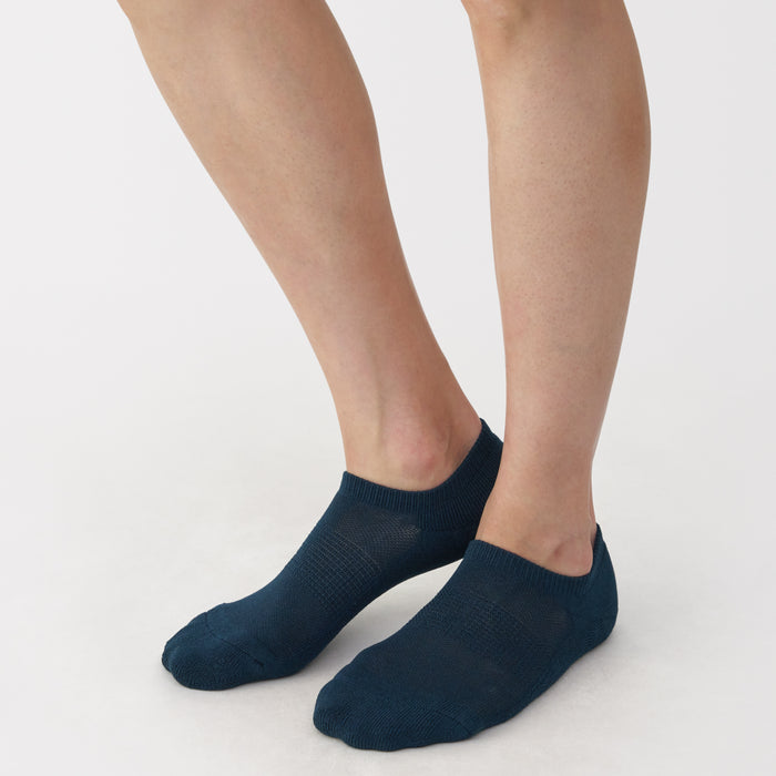 As the heel is at a right angle, the socks are knitted at a right angle to wrap comfortably around the heel and prevent the fabric from sagging and slipping off. Smooth textured pile on the sole.