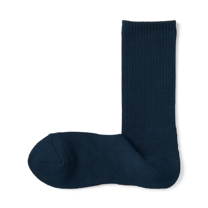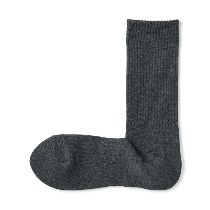 As the heel is at a right angle, the socks are knitted at a right angle to wrap comfortably around the heel and prevent the fabric from sagging and slipping off. Smooth textured pile on the sole for all-day comfort.