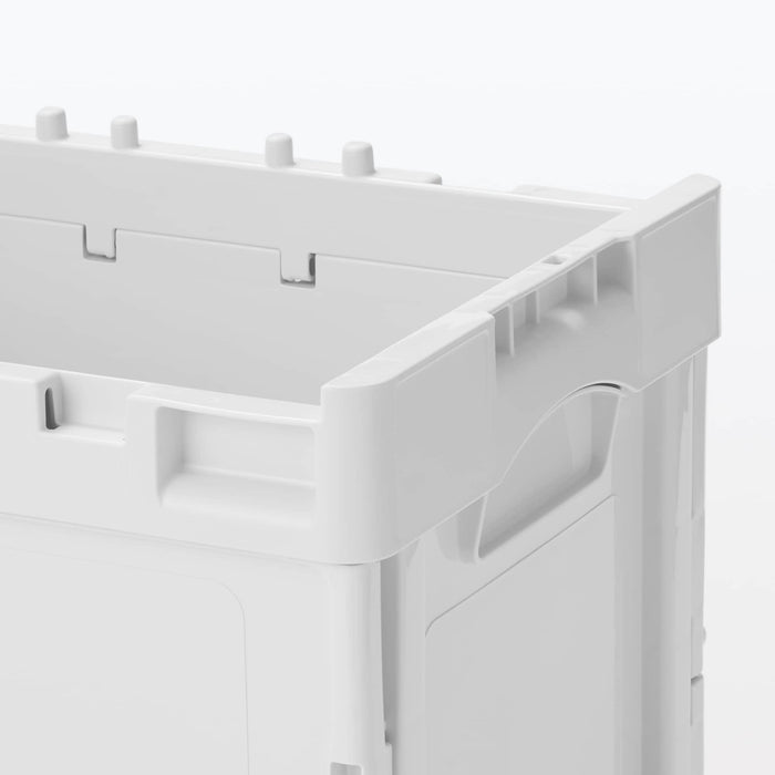 This durable commercial container box is used for transporting goods. It folds compactly when not in use and does not slip when stacked. It has an opening window on the side so you can access your items from the side.