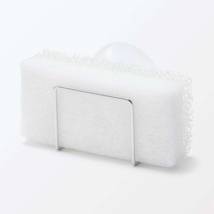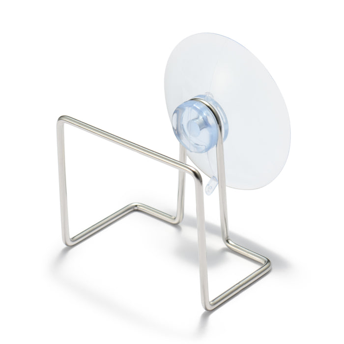 A sponge holder made from stainless steel. The suction cup design allows you to easily attach this sponge holder to the side of your sink for convenient storage. The open design allows for easy drainage and drying when not in use.
