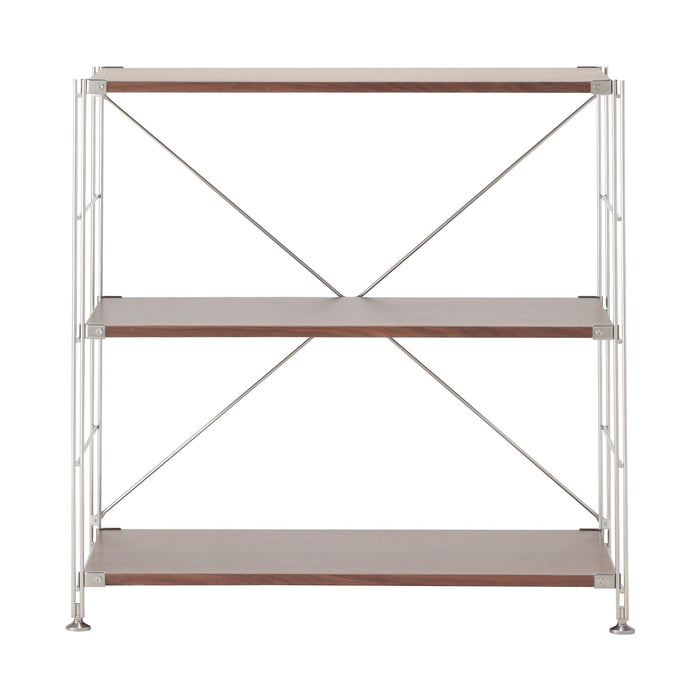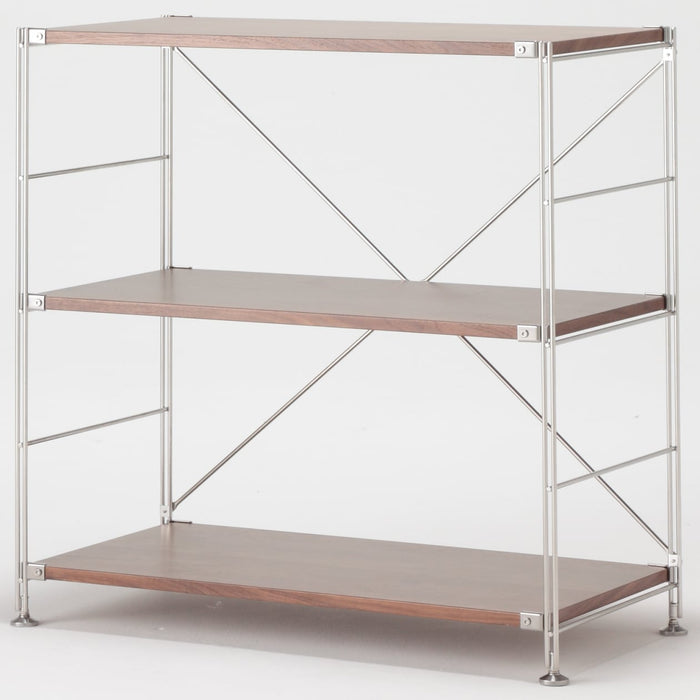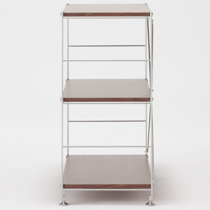 A small sturdy shelving unit that incorporates walnut wood and steel. Comes in multiple sizes for the best storage solutions. Easy to assemble and install in your storage room, kitchen or garage.